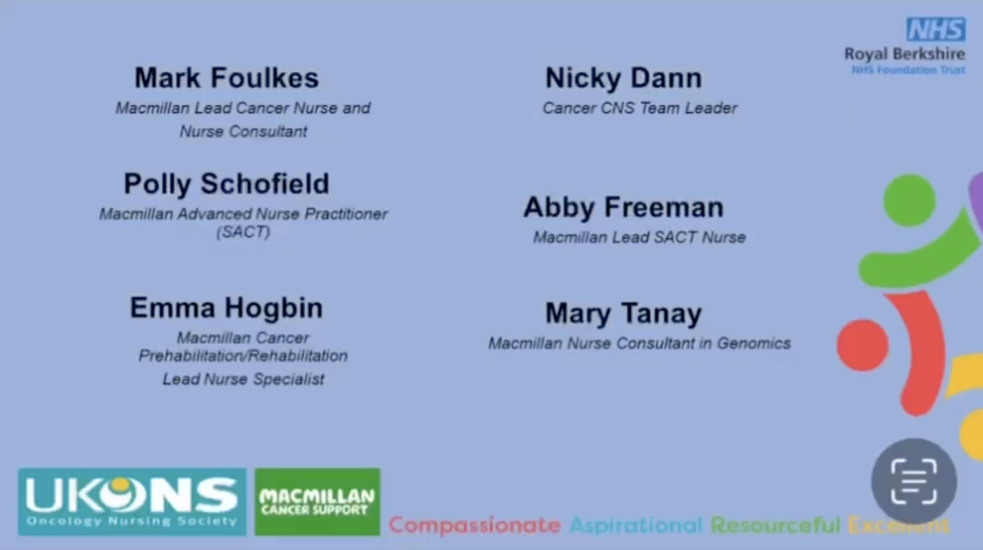 Shared by Mark Foulkes MBE who is Consultant/Macmillan Lead Cancer Nurse, Royal Berkshire NHS Foundation Trust, Immediate Past President of UKONS.